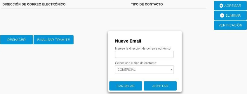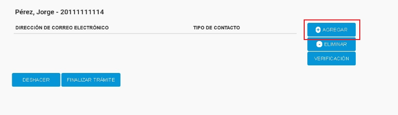 • PASO 4: Si escogiste ingresar nuevos datos, serás redirigido al «Sistema Registral» donde tendrás que presionar «Agregar«. Luego colocar el email y verificarlo ingresando el código que te llegará al mismo.