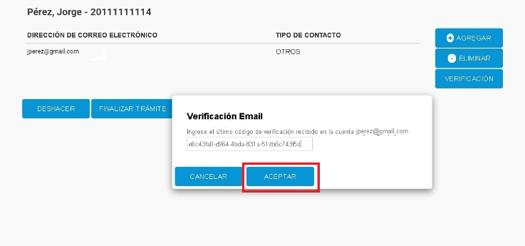 • PASO 5: Una vez que lo valides, debes presionar «Finalizar trámite» y se emitirá una constancia de actualización del mail.